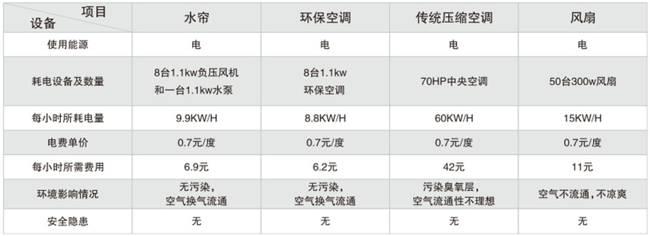 与传统降温工程能耗比较环保空调和水帘降温系统的节能优势(以1000m2厂房为例)